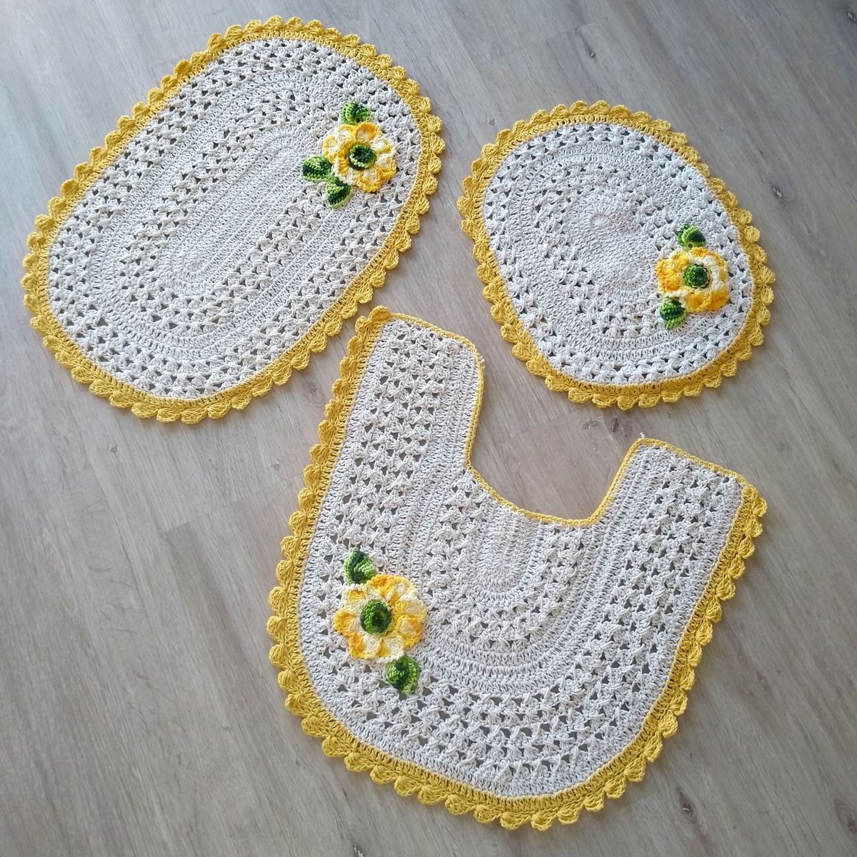 Kit Tapete Para Banheiro Em Croche Luz Cru Floral I 3 Pec No Elo7 Marcela Ferreira 1111019