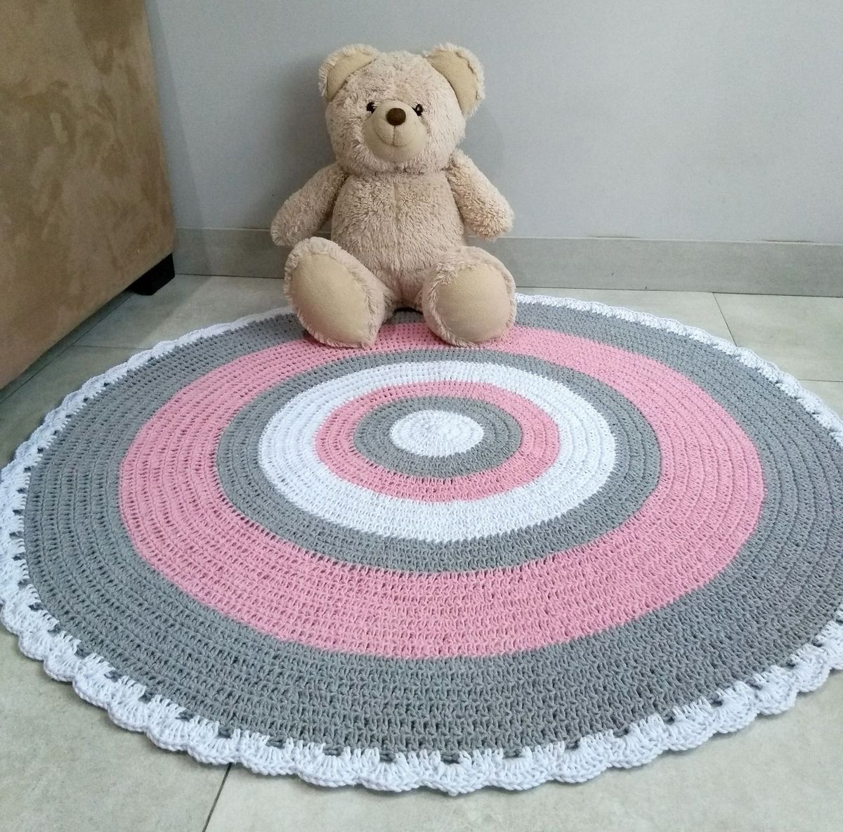 Tapete Cinza E Rosa Item De Decoracao Luxo Di Croche Nunca Usado